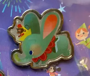 Dumbo is an Open Edition pin in the Wish Pin Set 3-pin set from the Tokyo Disney Celebration Hotel Mural Collection pin series. It was originally released in May, 2017 and was available from Tokyo Disneyland Resort .