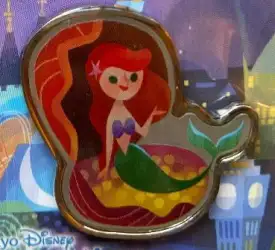 Ariel is an Open Edition pin in the Wish Pin Set 3-pin set from the Tokyo Disney Celebration Hotel Mural Collection pin series. It was originally released in May, 2017 and was available from Tokyo Disneyland Resort .