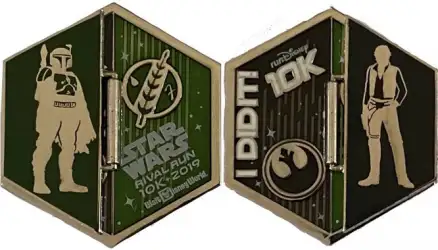 10 K - Han/Boba is a Limited Release pin from the runDisney: Star Wars Half Marathon Weekend pin series. It was originally released on , 2019 and was available from Walt Disney World .
