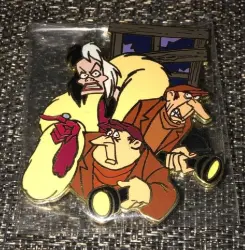 Cruella, Jasper, and Horace is a Limited Edition (LE) 100 pin from the Disney Auctions Villains and Sidekicks Set pin series. It was originally released on , 2003 and was available from Disney Auctions .