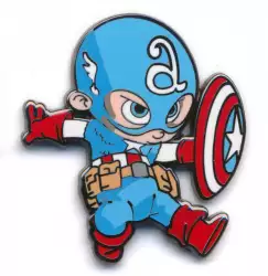 Captain America is a Limited Release pin in the Captain America, Falcon & Winter Soldier 3-pin set from the NYCC 2015 - Marvel Skottie Young pin series. It was originally released on , 2015 and was available from an Officially Licensed Disney trading pin vendor (see description for more information).