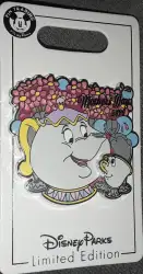 2020 - Mrs. Potts and Chip is a Limited Edition (LE) 5000 pin from the Mother's Day pin series. It was originally released on , 2020 and was available from Multiple Sources (WDW, DLR, etc.).