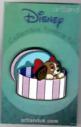 Surprise Season's Greetings - Lady in the Hatbox is a Limited Edition (LE) 150 pin from the Artland - Lady and the Tramp pin series. It was originally released in December, 2020 and was available from Artland / ACME .