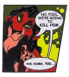 Scar Quote is an Open Edition pin from the Villains Comic Book Panel Mystery Collection pin series. It was originally released on , 2011 and was available from Multiple Sources (WDW, DLR, etc.).