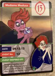 13: Reflections of Evil - Madame Medusa is a Limited Edition (LE) 3000 pin from the Re-Collections - Trading Card and Pin pin series. It was originally released on , 2020 and was available from Walt Disney World .