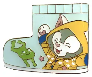 Gelatoni Raincoat Boot is an Open Edition pin from the SDR - Rainy Day Mystery pin series. It was originally released on , 2019 and was available from Shanghai Disney Resort .