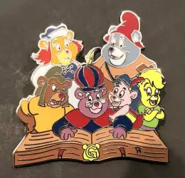 Gummi Bears looking at the Great Book of Gumm is an Open Edition pin from the Gummi Bears pin series. It was originally released on , 2020 and was available from Multiple Sources (WDW, DLR, etc.).