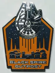 Black Spire Outpost (Only) is an Open Edition pin from the Star Wars Galaxy's Edge - Millennium Falcon Booster Set pin series. It was originally released on , 2019 and was available from Multiple Sources (WDW, DLR, etc.).