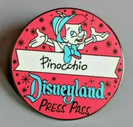 Pinocchio is a Limited Edition (LE) 250 pin from the Dateline: Disneyland 1955 - Press Pass Mystery Set pin series. It was originally released on , 2010 and was available from Disneyland Resort .