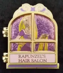 Rapunzel's Hair Salon is a Limited Edition (LE) 1000 pin from the Funny Business Series pin series. It was originally released on , 2014 and was available from Disneyland Resort .