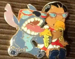 Lilo and Stitch eating ice cream is a Limited Edition (LE) 1400 pin from the Aloha! pin series. It was originally released on , 2005 and was available from Disney Store Japan .