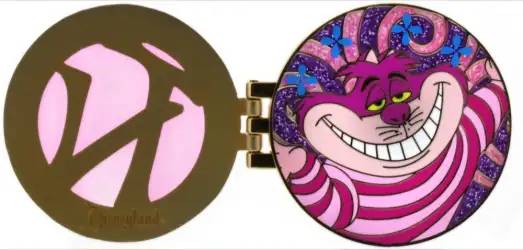 Pin Trading Night Hinged Pin Series - Cheshire Cat is a Limited Edition (LE) 750 pin from the Pin Trading Night 2014 pin series. It was originally released on , 2014 and was available from Disneyland Resort .