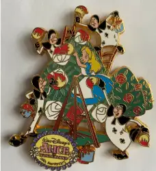 Alice and Soldiers is a Limited Edition (LE) 100 pin from the Alice in Wonderland 50th Anniversary Pin pin series. It was originally released on , 2001 and was available from Disney Auctions .