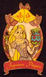 Joyeuses Paques (Rapunzel) is a Limited Edition (LE) 600 pin from the Easter 2014 pin series. It was originally released on , 2014 and was available from Disneyland Resort Paris .
