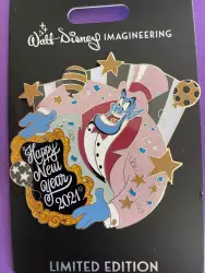 Happy New Year 2021 - Genie is a Limited Edition (LE) 250 pin from the New Year's Eve/Day pin series. It was originally released on , 2020 and was available from Walt Disney Imagineering .