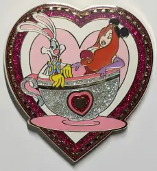 Roger and Jessica Rabbit Tea Cups is a Limited Edition (LE) 250 pin from the Valentine's Day pin series. It was originally released on , 2013 and was available from Walt Disney Imagineering .