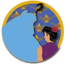 Aladdin and Genie is a Limited Edition (LE) 400 pin from the Friendship Series pin series. It was originally released on , 2021 and was available from Disney Studio Store Hollywood / Soda Fountain .