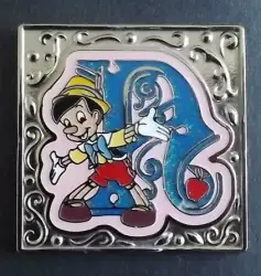 Pinocchio (Blue Glitter and Pink Filigree Letter N) is a Limited Release pin from the I Love Mickey & Minnie Mystery Tin Collection pin series. It was originally released in February, 2013 and was available from Hong Kong Disneyland .