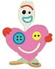 Forky is a Limited Edition (LE) 400 pin from the Valentines Love Notes Series pin series. It was originally released on , 2021 and was available from Disney Studio Store Hollywood / Soda Fountain .