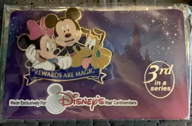 Minnie, Mickey, and Pluto is a Limited Release pin from the Rewards are Magic pin series. It was originally released on , 2004 and was available from Multiple Sources (WDW, DLR, etc.).