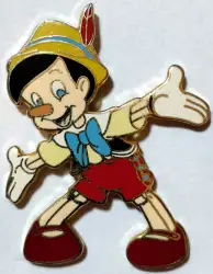 Pinocchio with Arms Spread Out is an Open Edition pin from the Pinocchio pin series. It was originally released in June, 2002 and was available from Multiple Sources (WDW, DLR, etc.).