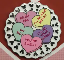 Candy Conversation Hearts Plate is a Limited Edition (LE) 5000 pin from the Valentine's Day pin series. It was originally released in February, 2021 and was available from Disney Store US .