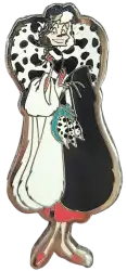 Cruella de Vil with Teal Bag is an Open Edition pin from the Monogram International Inc (M.I.I.) pin series. It was originally released 2019 and was available from an Officially Licensed Disney trading pin vendor (see description for more information).