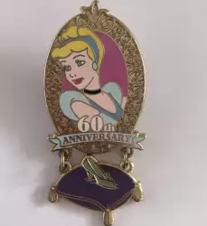 Cinderella 60th Anniversary is a Limited Edition (LE) 1750 pin from the Cinderella 60th Anniversary pin series. It was originally released on , 2010 and was available from Disney Store UK .