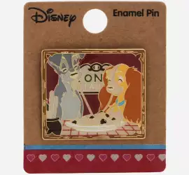 Lady and Tramp Spaghetti Dinner is an Open Edition pin from the BoxLunch - Disney pin series. It was originally released on , 2019 and was available from an Officially Licensed Disney trading pin vendor (see description for more information).