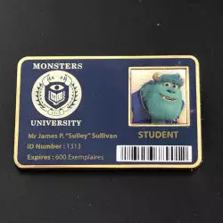 Sulley Student ID Card is a Limited Edition (LE) 600 pin from the Monsters University pin series. It was originally released on , 2013 and was available from Disneyland Resort Paris .