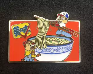 Chip and Dale Noodles is an Open Edition pin from the Say Cheese Travel Mystery pin series. It was originally released on , 2020 and was available from Shanghai Disney Resort .