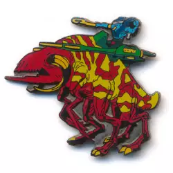 Blue Alien Riding a Red & Yellow Bug is an Open Edition pin from the DisneyQuest pin series. It was originally released on , 1999 and was available from Walt Disney World .