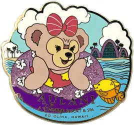 Shellie Mae in Swimming Tube - Aulani is an Open Edition pin from the Aulani Duffy and Friends pin series. It was available from Multiple Sources (WDW, DLR, etc.).