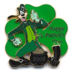 2005 - NYC World of Disney - Leprechaun Goofy with a Pot of Gold is a Limited Edition (LE) 1000 pin from the St. Patrick's Day pin series. It was originally released on , 2005 and was available from Disney Store US .
