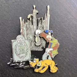 Goofy & Pluto as Caretaker and Dog is an Open Edition pin from the Haunted Mansion pin series. It was originally released on , 2003 and was available from Multiple Sources (WDW, DLR, etc.).