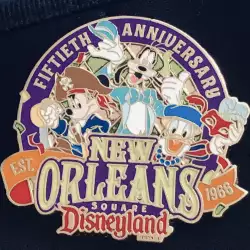 New Orleans Square - 50th Anniversary is a Limited Edition (LE) 750 pin from the Cast Exclusive Attraction Anniversaries Series pin series. It was originally released on , 2018 and was available from Theme Park Cast Member Exclusive .