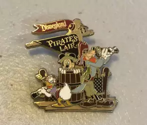 Donald, Mickey, and Goofy on Pirate's Lair is an Open Edition pin. It was originally released on , 2008 and was available from Disneyland Resort .