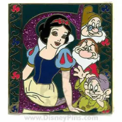 Pin features Snow White , Dopey , Grumpy and Doc from Snow White & the Seven Dwarfs