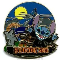 Stitch at the Sorcerer's Hat is a Limited Edition (LE) 2000 pin from the Haunted Parks 2006 pin series. It was originally released on , 2006 and was available from Walt Disney World .