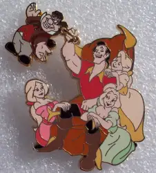 Gaston, Claudette, Laurette, Paulette and LeFou is a Limited Edition (LE) 150 pin from the Beauty and the Beast pin series. It was originally released on , 2011 and was available from Disney Store UK .