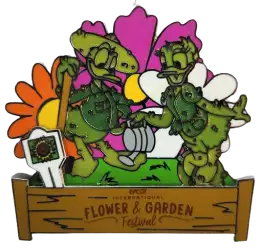 Donald and Daisy Topiaries is a Limited Edition (LE) 3000 pin from the EPCOT International Flower & Garden Festival 2021 pin series. It was originally released on , 2021 and was available from Walt Disney World .