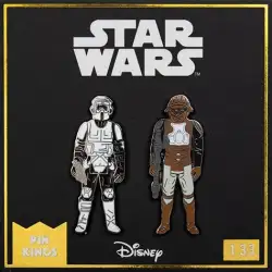 Biker Scout and Lando (1.33) is an Open Edition pin from the Numskull Designs - Star Wars pin series. It was originally released on , 2021 and was available from an Officially Licensed Disney trading pin vendor (see description for more information).