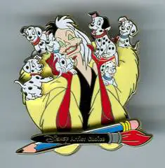 Artist Choice – Cruella's Puppies is a Limited Edition (LE) 500 pin from the Happiest Pin Celebration On Earth pin series. It was originally released on , 2005 and was available from Walt Disney World .