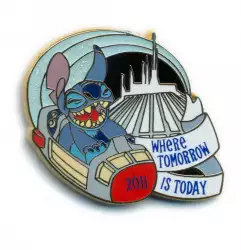 Stitch - Where Tomorrow is Today is an Open Edition pin from the Annual Passholder - Where... Collector's Booster Set pin series. It was originally released on , 2011 and was available from Disneyland Resort .