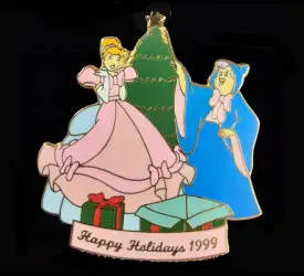 1999 - Cinderella and Fairy Godmother is a Limited Edition (LE) 2000 pin from the Happy Holidays pin series. It was originally released on , 1999 and was available from Walt Disney World .