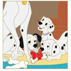Perdita and Puppies is a Limited Edition (LE) 400 pin from the Endearing Moments pin series. It was originally released on , 2021 and was available from Disney Studio Store Hollywood / Soda Fountain .