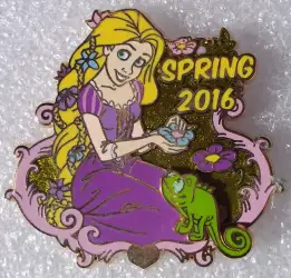 Rapunzel and Pascal is a Limited Edition (LE) 2000 pin from the Disney Parks Seasons - Spring pin series. It was originally released on , 2016 and was available from Multiple Sources (WDW, DLR, etc.).