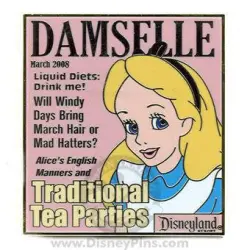 March (Alice) is a Limited Edition (LE) 1000 pin from the Damselle Magazine Collection pin series. It was originally released on , 2008 and was available from Disneyland Resort .