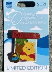 Winnie the Pooh - Visit 100 Acre Wood is a Limited Edition (LE) 2500 pin from the Disney Dream Destinations pin series. It was originally released on , 2021 and was available from Disneyland Resort .