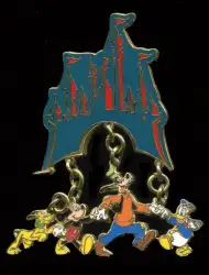 Pin features Donald Duck , Goofy , Mickey Mouse and Pluto